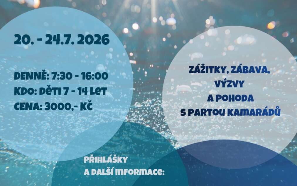 Pořádáme příměstský tábor od 20. – 24. 7. 2026 pro děti 7 – 14 let. Více informací o táboře naleznete zde.