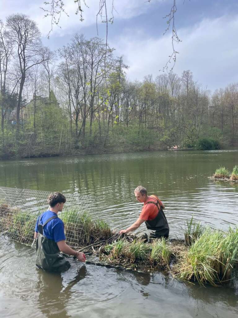 Instalace ostrovů na jezírku v naší zoo.